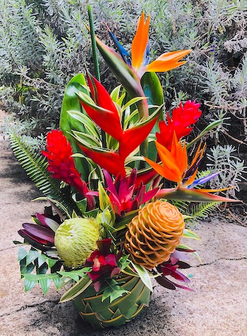 Paradise protea and tropical arrangement